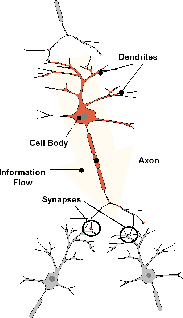 - The pre-synaptic terminal. This is the bulge at the tip of the axon. It passes the neuron signal on to the dendrites of other neurons. The signals that flow through the neurons and axons are very small changes in the electrical charge of cell components. The changes are achieved via the flow of various molecules and chemical compounds into and out of the cells. In the synapse, the pre-synaptic terminal of the transmitting neuron and the dendrite of the receiving neuron do not touch. The signal passes from one neuron to another by the release of certain chemicals called neurotransmitters. The amount of neurotransmitter released depends on the strength of the signal received at the pre-synaptic terminal, as well as the number of times it’s been triggered recently. Therefore, the overall strength of the signal passed from one neuron to another depends on the strength of the first trigger, moderated by how often the same signal has passed through that synapse. Now, I’ve simplified the structure of the neural network to give you an idea of the basics. If you want an idea of how complex the brain is, consider these statistics. Researchers estimate there are up to roughly 10^11^ neurons in your brain alone (not considering the rest of the nervous system). That’s perhaps 100,000,000,000, or one hundred billion neurons. If each neuron just stored a 1 or 0 like a computer, you would have around 93 gigabits of storage. But that’s not all. Each neuron typically has between 1,000 and 10,000 synapses. The combinations of the synapses control whether a signal is passed on or not. Multiply out those numbers, and you have purely staggering storage and processing abilities all within the space the size of your head.