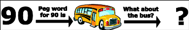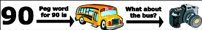 You could visualize a big camera taking a photo of a bus, however this means you visualize the big camera first. When you are trying to recall what you “stored” with the peg word for 90, you first remember that “bus” is the peg word for 90. You may then find it difficult to recall the camera because the camera is the centerpiece of your original visualization, not the bus.